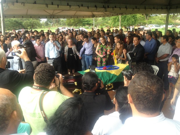 Quando o corpo do senador estava no jazigo, a esposa do parlamentar, Cínthia Ribeiro, abraçou o caixão se despedindo pela última vez do marido, com quem tem um filho, João Antônio Caetano Ribeiro.
