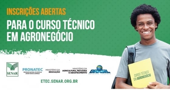 O Serviço Nacional de Aprendizagem Rural está com inscrições abertas para o processo seletivo do curso Técnico em Agronegócio, na modalidade semipresencial, com a oferta de 3.020 vagas. Totalmente gratuito, o curso é oferecido em parceria com os Ministérios da Educação (MEC) e da Agricultura e Pecuária e Abastecimento (Mapa).