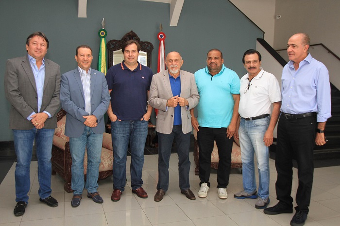 Na manhã deste domingo, 22, o governador Simão Jatene recebeu visitas de cortesia do presidente da Câmara dos Deputados, Rodrigo Maia (DEM/Rio de Janeiro) e do deputado federal Jovair Arantes (PTB/Goiás), com suas respectivas comitivas, que estão em Belém cumprindo agenda com parlamentares em busca de apoio para a cadeira de comando da Casa. Os dois encontros ocorreram no Palácio do Governo.