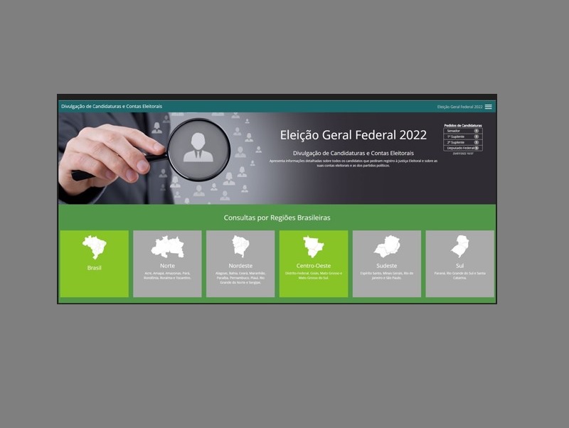 Na página principal do sistema, o interessado encontrará a quantidade total de candidaturas, bem como as candidatas e os candidatos por cargo. No mapa do Brasil, é possível filtrar a pesquisa clicando na unidade da Federação e depois no cargo desejado. Em seguida, aparecerá uma lista com todas as pessoas que concorrem ao cargo no estado.