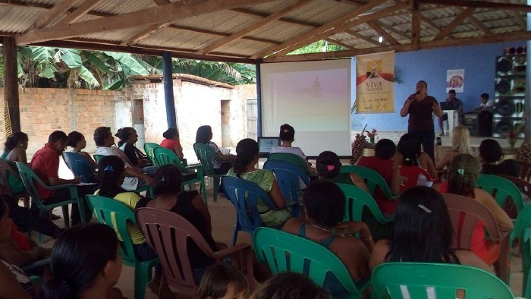 A diretora de Direitos Humanos da Secretaria de Estado da Cidadania e Justiça (Seciju), Maria Vanir Ilídio, faz uma explanação do que está sendo a caravana, neste mês da mulher, no Bico do Papagaio. “É uma alegria muito grande o Governo do Estado ter criado essa ação e os movimentos sociais aqui do Bico do Papagaio terem abraçado essa iniciativa. Estamos aqui falando sobre a importância do combate à violência contra as mulheres, da importância da inclusão econômica por meio do artesanato e do enriquecimento de quintais; falando com as mulheres sobre seus direitos, oferecendo atendimento de saúde e palestras sobre prevenção do câncer de mama e do colo de útero. Além desse atendimento, também temos profissionais capacitados fazendo atendimento às mulheres que sofrem algum tipo de violência”, informou.