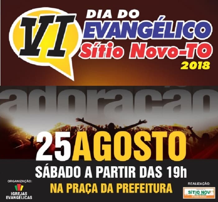 O Dia do Evangélico, comemorado no próximo sábado, 25, em Sítio Novo, município no Bico do Papagaio, será marcado por shows gospel e ministrações religiosas.