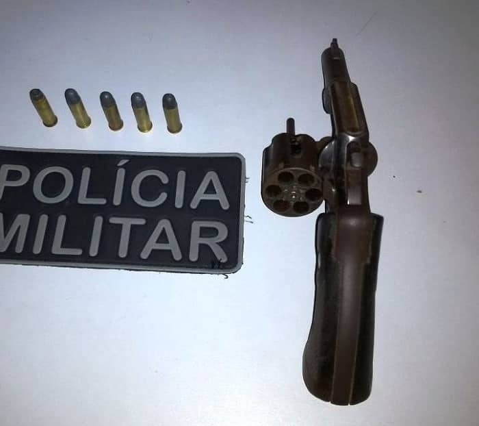 O condutor de um veículo VW Gol, com placa de Sítio Novo do Tocantins, terminou sendo preso pelos policiais militares do Destacamento após ser flagrado com um revólver calibre 38 com 5 cartuchos intactos escondidos debaixo do banco do motorista.