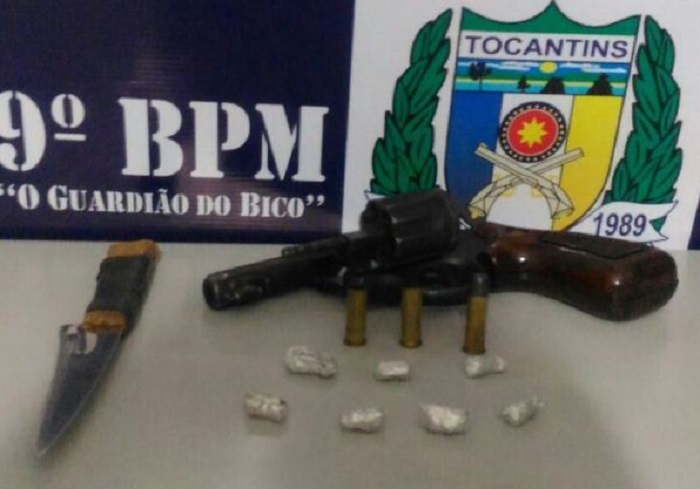 Em poder do autor os policiais apreenderam além da droga localizada no bolso do short do autor, ainda um revolver calibre 38 com três cápsulas, sendo duas deflagradas e uma faca.