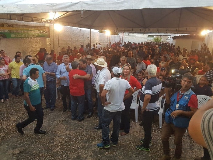Antes de se dirigir ao local do encontro político, no Shafira Clube, onde também ocorreu a filiação oficial do pré-candidato a deputado estadual, Jair Farias, Marcelo fez uma pequena caminhada e foi saudado por peemedebistas de toda a região que se deslocaram até Sítio Novo.