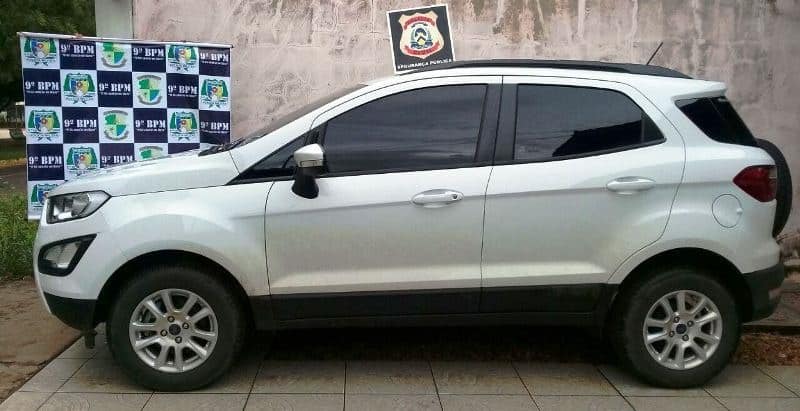 Um veículo Ford Ecosport SE, placa de Almeirim-PA furtado de uma locadora de carros no estado da Bahia, foi recuperado pela Polícia Militar na tarde dessa terça-feira, 22, no centro da cidade de Sítio Novo. O veículo estava no interior de uma empresa que presta serviço de vistoria de veículos para o DETRAN (TO).