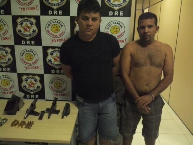 destaque-286769-prsWelber Parente de Matos, Roberto da Costa Nunes e Leandro de Oliveira foram presos em flagrante pela Polícia Civil, nesta quinta-feira (22). Eles são suspeitos de tráfico de drogas e de cometer assaltos na Grande Belém. Com eles foram encontrados duas pistolas de calibres 380 e 7.65 e um revólver calibre 38. Além das armas, foram apreendidos 340 gramas de pedras de óxi de cocaína.