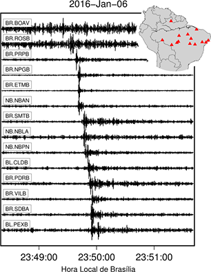 “Na seção sísmica preparada mostramos os registros da componente vertical para diversas estações que são também indicadas no mapa. A estação mais ao Norte do Brasil mostrada na seção é a estação de Boa Vista (BOAV) e a estação mais ao Sul é a estação de Peixe (PEXB). Estações na região Sul e Sudeste do Brasil não registraram as ondas devido a sua elevada distância e configuração em relação a explosão”, disse o Centro de Sismologia em nota oficial.