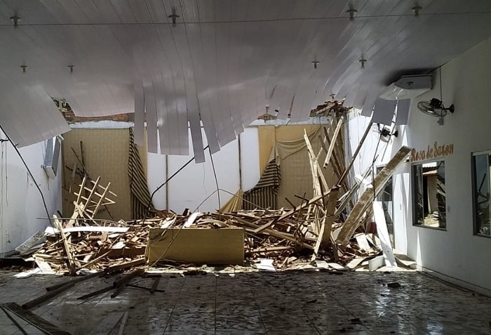 O pastor Edmilson Viana ficou levemente ferido na manhã deste domingo (5) após o teto de uma igreja evangélica desabar no centro de Filadélfia, na região norte do estado. O prédio fica na rua Jataí e foi usado horas antes do desabamento como escola dominical. Na hora do acidente, apenas o pastor estava na igreja.