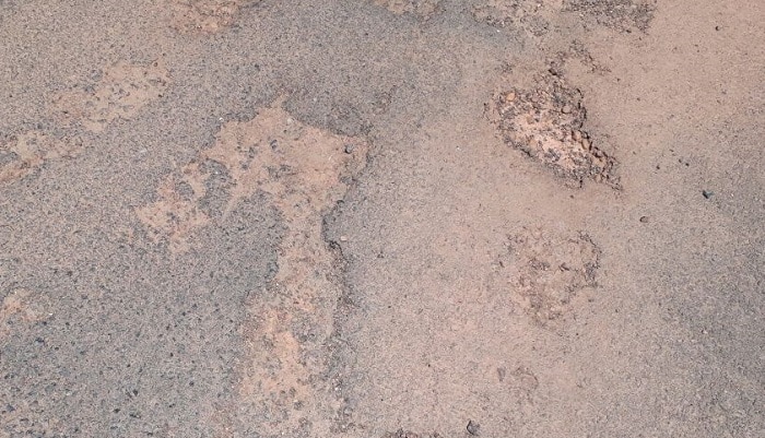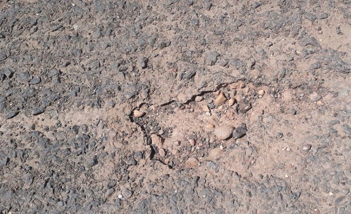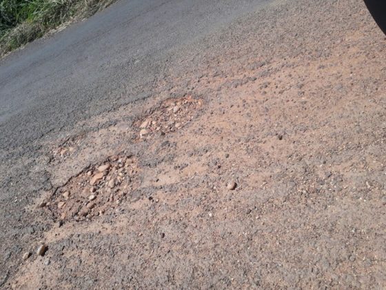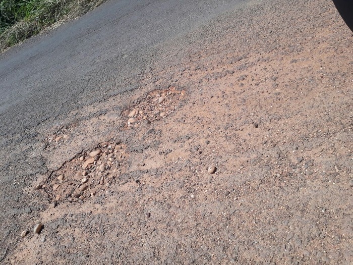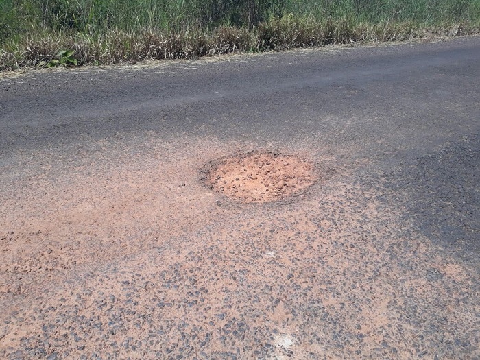 O asfalto não está apenas se deteriorando, mas em alguns pontos começam a aparecer indícios de possível afundamento, indicando que o problema também é estrutural.