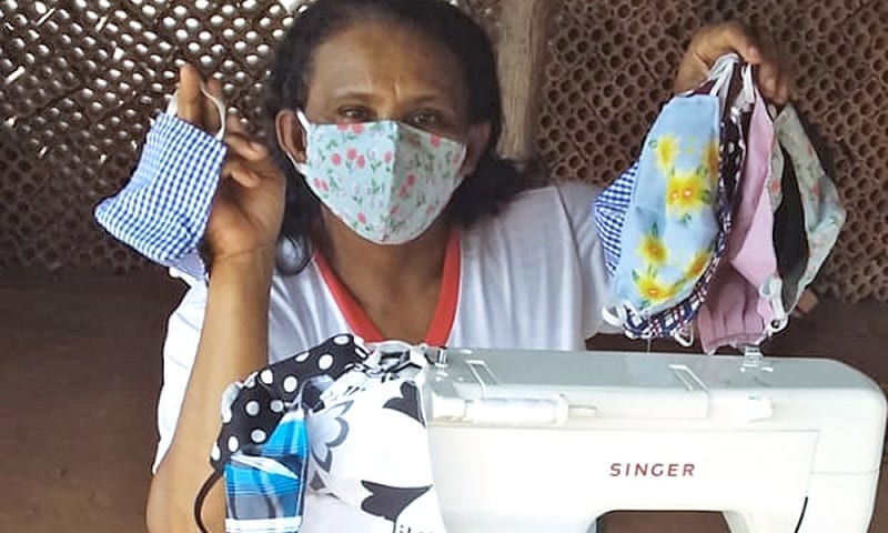 A confecção de máscaras caseiras em tecido tem sido uma alternativa de renda para as mulheres que vivem na zona rural, nestes tempos de enfrentamento à pandemia do novo Coronavírus.