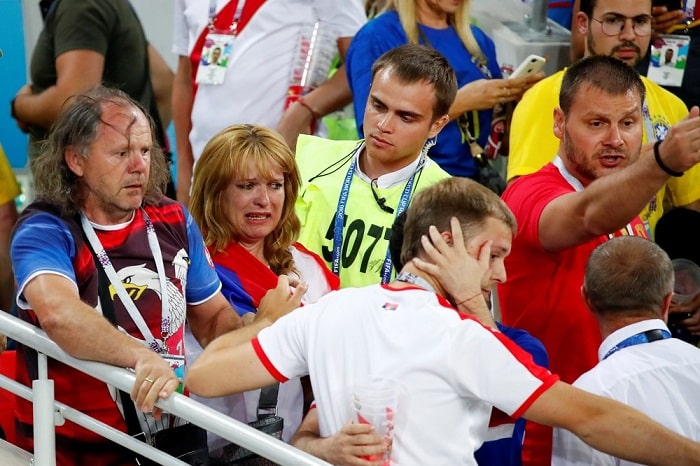 A torcida brasileira não fez só festa na partida entre Brasil e Sérvia, nesta quarta-feira, 27, em Moscou. Torcedores se envolveram em diversas brigas com sérvios durante a partida.
