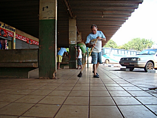 Que existia funcionário do estado prestando serviço de limpeza, isso em 2010, mas que o funcionário foi demitido e desde então são os próprios usuários do terminal que fazem a limpeza do local.