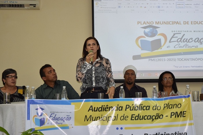 Professores, gestores, coordenadores, representantes de escolas públicas e privadas, dos Poderes Executivo, Legislativo e Judiciário, autoridades civis e eclesiásticas de Tocantinópolis participaram na última sexta-feira, 24, no Auditório vigilante Adão Ribeiro da Silva, no Campus da Universidade Federal do Tocantins (UFT), de uma audiência pública para discutir o Plano Municipal de Educação (PME) e adequá-lo ao Plano Nacional de Educação (PNE).
