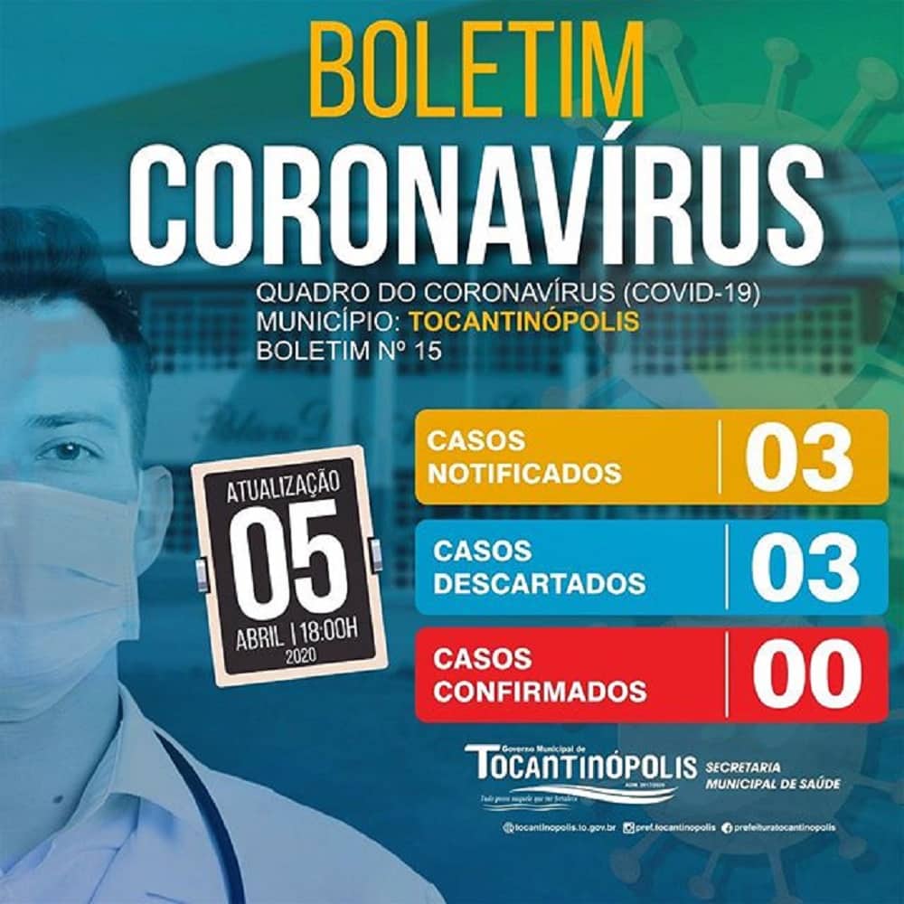 Publicidade Publicidade Bico do Papagaio TOCANTINÓPOLIS: Boletim coronavírus deste domingo, 5 By Folha do Bico 5 de abril de 2020 0 825 Share WhatsAppPrintTelegramFacebookTwitterCopy URL Folha do Bico Noticias Relacionadas TOCANTINÓPOLIS: UFNT abre vagas para graduação pelo SISU 2026/1 15 de janeiro de 2026 ARAGUATINS: Processo seletivo complementar da UNITINS está com inscrições abertas 15 de janeiro de 2026 ESPERANTINA: Escola Família Agrícola Padre Josimo recebe trator e fortalece ensino prático no campo 15 de janeiro de 2026 Share WhatsAppPrintTelegramFacebookTwitterCopy URL Previous articleARAGUATINS: Saiba em quais partidos os vereadores se filiaramNext articlePARAUAPEBAS: Tocantinense morre ao cair do segundo andar de prédio - Advertisement - - Advertisement - Ultimas noticias ARAGUATINS: Governador Wanderlei recebe Aquiles e discutem hospital materno e TO-010 15 de janeiro de 2026 SÃO BENTO: Droga e dinheiro são encontrados durante abordagem de meliante no bairro São Francisco 15 de janeiro de 2026 ARAGUATINS: Aquiles recua após conflito com DETRAN e apresenta pacote de medidas para o trânsito 15 de janeiro de 2026 IMPERATRIZ: Prefeitura publica decreto com calendário de feriados e pontos facultativos de 2026 15 de janeiro de 2026