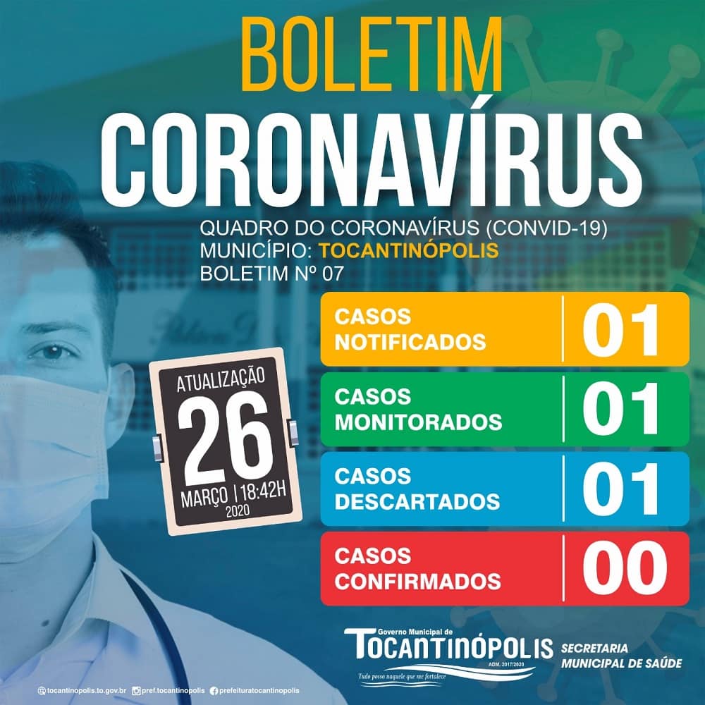Publicidade Publicidade Bico do Papagaio TOCANTINÓPOLIS: Boletim de Acompanhamento do Coronavírus desta quinta, 26 By Folha do Bico 26 de março de 2020 0 821 Share WhatsAppPrintTelegramFacebookTwitterCopy URL Folha do Bico Noticias Relacionadas ARAGUATINS: Abordagem em ônibus leva à captura de suspeito de furto de celular e posse de cocaína 16 de janeiro de 2026 AUGUSTINÓPOLIS: Atendimento ao público na Prefeitura passa a ser das 8h às 12h 16 de janeiro de 2026 AUGUSTINÓPOLIS: Estádio Bicão passa por revitalização inédita no gramado 16 de janeiro de 2026 Share WhatsAppPrintTelegramFacebookTwitterCopy URL Previous articleIMPERATRIZ: Prefeitura altera decreto que instaura estado de calamidadeNext article23 cidades do Bico vão receber recursos de Tiago Dimas para enfrentamento do coronavírus - Advertisement - - Advertisement - Ultimas noticias Falta de laudos técnicos impede presença de público em dois jogos do Tocantinense 17 de janeiro de 2026 AXIXÁ: Auri ia tirar recursos de asfalto e estradas para bancar show de Bruno e Marrone, diz MPF 16 de janeiro de 2026 Ponte estaiada sobre o rio Xingu começa a ganhar forma na Transamazônica no Pará 16 de janeiro de 2026 Bola rola neste final de semana e abre oficialmente o Tocantinense 2026 16 de janeiro de 2026