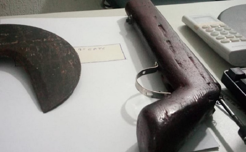 Ao deslocar imediatamente, a equipe de policiais, localizaram no local, o idoso com a referida arma, onde confirmou está de posse da mesma e, sem nenhuma resistência, a entregou à equipe policial. O outro suspeito, de posse de uma foice, foi abordado e a referida arma branca, foi apreendida.