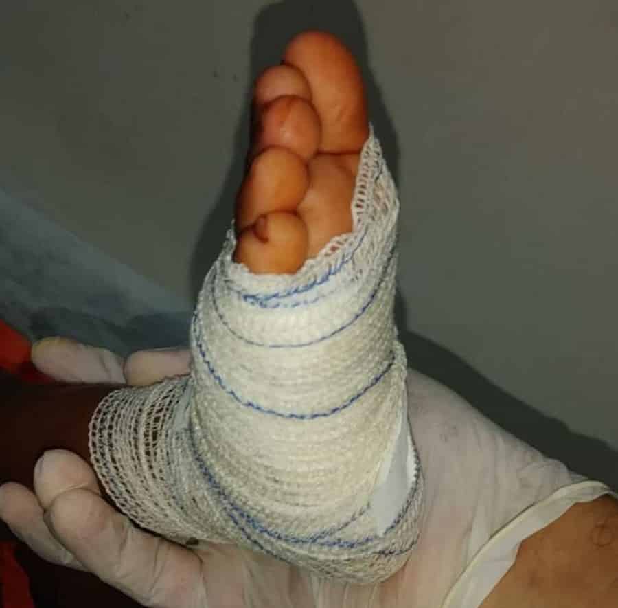 Segundo informações de parentes, a criança havia se lesionado a cerca de 10 dias, quando teve o pé preso entre os raios de uma bicicleta e desde então vinha sofrendo muita dores, apresentando dificuldade de dormir.