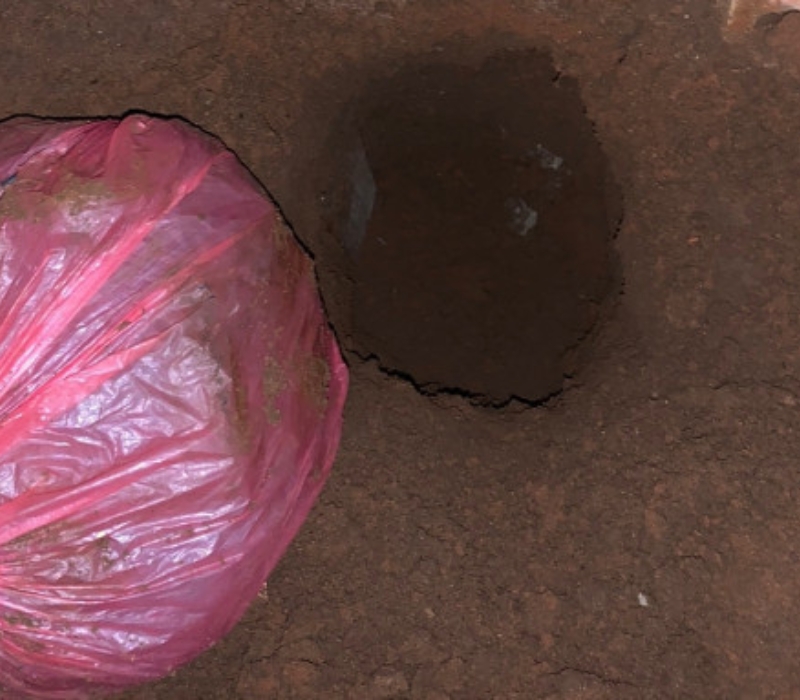 Ao realizar a busca pessoal nos suspeitos, foram localizados dois aparelhos celulares, que os abordados disseram ter recebido como pagamento por drogas. Ainda durante entrevista, um dos homens informou a localização de mais entorpecentes. A droga estava enterrada em um saco plástico no quintal da residência. A proprietária da casa, avó do suspeito, autorizou a entrada dos policiais.