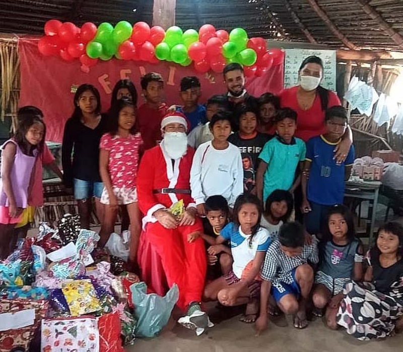“Inicialmente a ação seria realizada apenas na aldeia São Raimundo, mas como o quantitativo de presentes foi maior que o número de estudantes da extensão escolar, decidimos entregar os presentes também nas aldeias Bonito e Brejão. Foi um momento muito especial, de ver a alegria e o encantamento dos alunos”, explicou Mianca Fernandes Rocha, professora da extensão escolar da Aldeia São Raimundo, onde participou da entrega destinada aos estudantes da primeira fase do ensino fundamental.