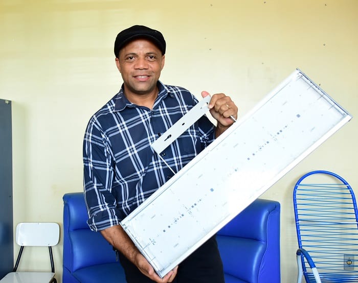 O led não é uma decisão só moderna, considera economia de custo de 80% em relação as lâmpadas de mercúrio, além disso, tem maior garantia e durabilidade. Cada refletor de 80x25cm, equivale a 240 watts, e representa 50 mil lumens [O lúmen é a quantidade de luz emitida por uma lâmpada em todas as direções, também chamada de fluxo luminoso].
