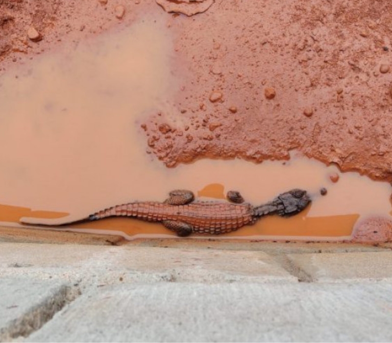 O pequeno réptil foi encontrado na Unidade Babaçu, em uma poça de lama e, imediatamente os servidores acionaram o Naturatins para proceder o manejo do animal.