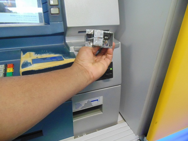 Após um dos funcionários da agência bancária perceber que no encaixe dos cartões havia algo estranho, solicitou que o técnico da agência verificasse a máquina, e logo percebeu que havia um dispositivo falso contendo um microchip que possivelmente servia para captar informações dos cartões dos clientes e logo acima do caixa, havia uma micro câmera com uma bateria acoplada e uma espécie de cartão de memória.