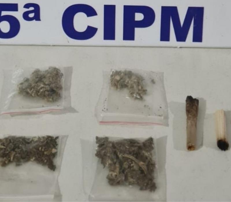 Durante patrulhamento, a guarnição policial foi acionada, via Centro de Operações da Polícia Militar (COPOM), para averiguar a informação de que havia pessoas fazendo uso de entorpecentes em uma quadra de esportes do município. A situação foi comprovada e, após buscas pessoais, foram localizados papelotes de maconha.