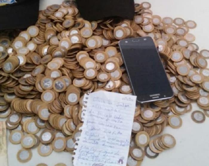 Alguns minutos depois do registro da última ocorrência, as equipes conseguiram prender o indivíduo na residência dele. No interior da casa, dentro da sacola, estavam as moedas e um aparelho celular. (Mariele França)