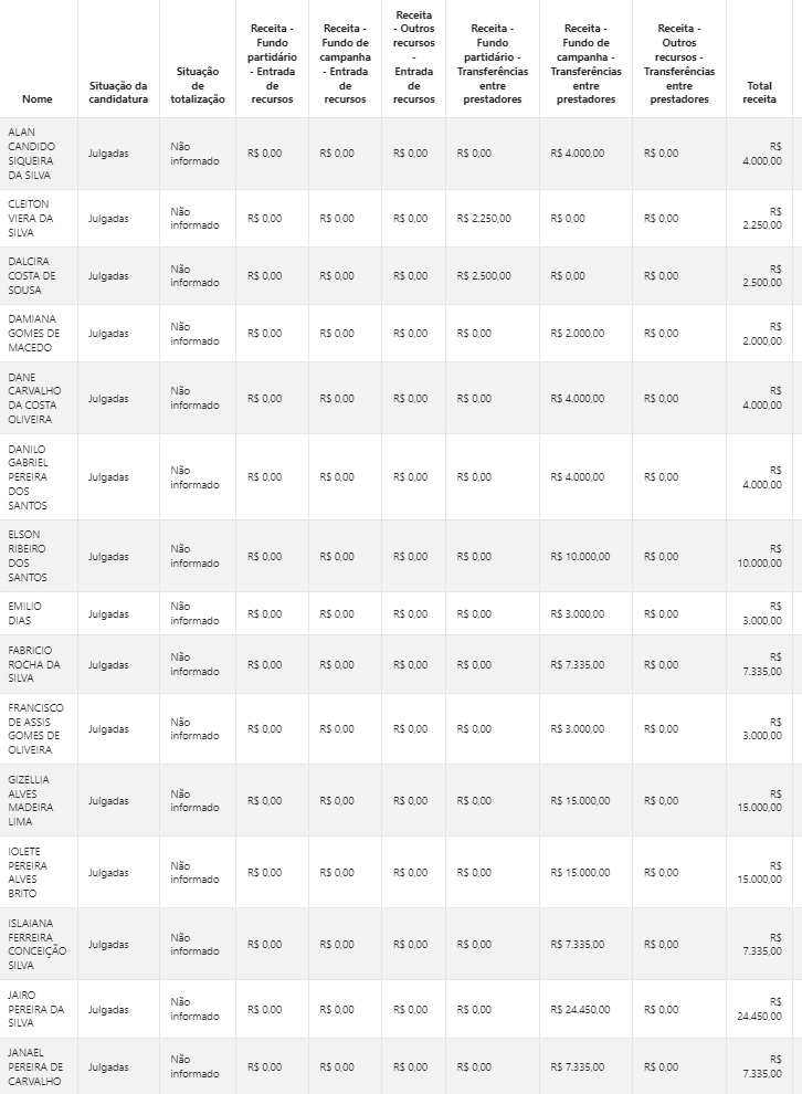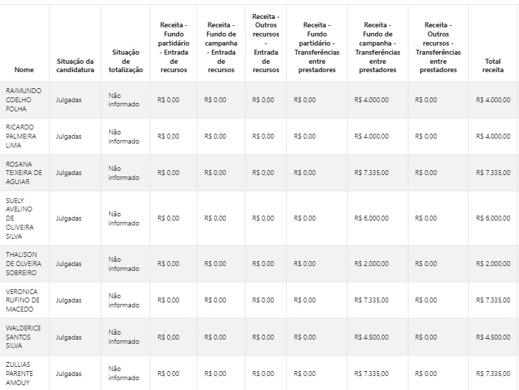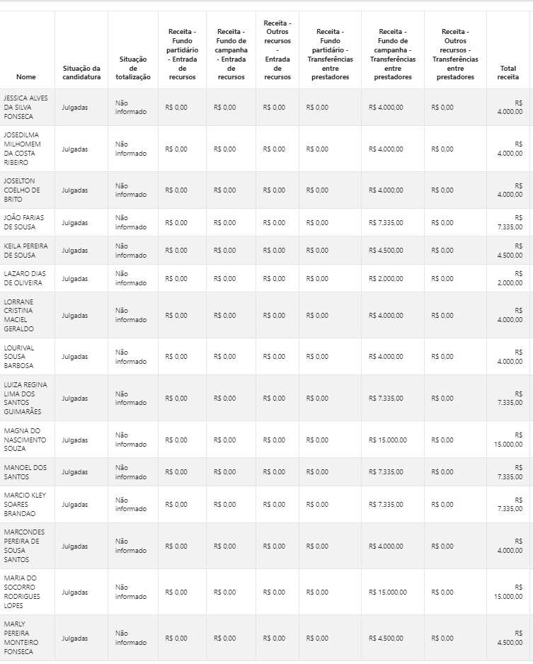 O maior recebedor de recursos é o candidato Irmão Jairo, do União Brasil, que já foi contemplado com R$ 24.450,00 (vinte e quatro mil, quatrocentos e cinquenta reais). Esse valor é 63% maior que o recebido pelos segundos colocados, que receberam R$ 15 mil.