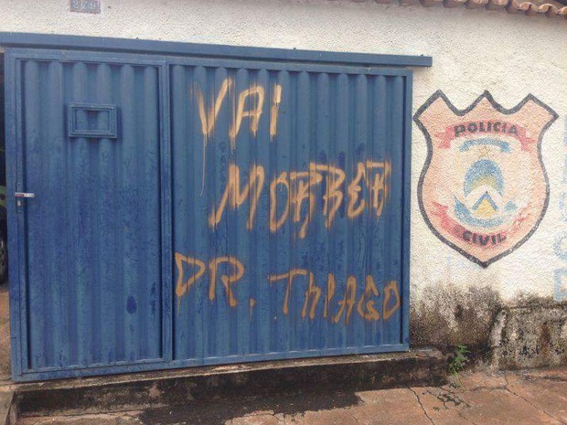 Um jovem foi preso por suspeita de pichar o portão de uma delegacia da Polícia Civil e ameaçar o delegado em Tocantinópolis, região norte do Tocantins. Segundo a polícia, Maurício Barbosa da Silva, de 18 anos, escreveu em tom de ameaça a seguinte frase: “Vai morrer Dr. Thiago”. O homem a que o jovem se referia é o delegado do município, Tiago Daniel de Moraes. O suspeito fez as pichações na madrugada de quarta-feira, 21 e foi preso no dia seguinte.
