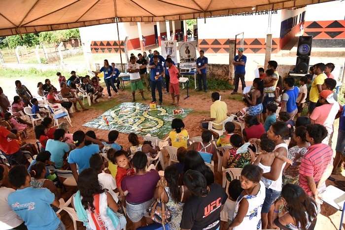 Os indígenas participaram atentamente do jogo de tabuleiro que é aplicado com pedagogia interativa e lúdica, e por meio de perguntas e respostas que abordam relevantes temas como cidadania, democracia, processo eleitoral, corrupção, voto consciente, entre outros.
