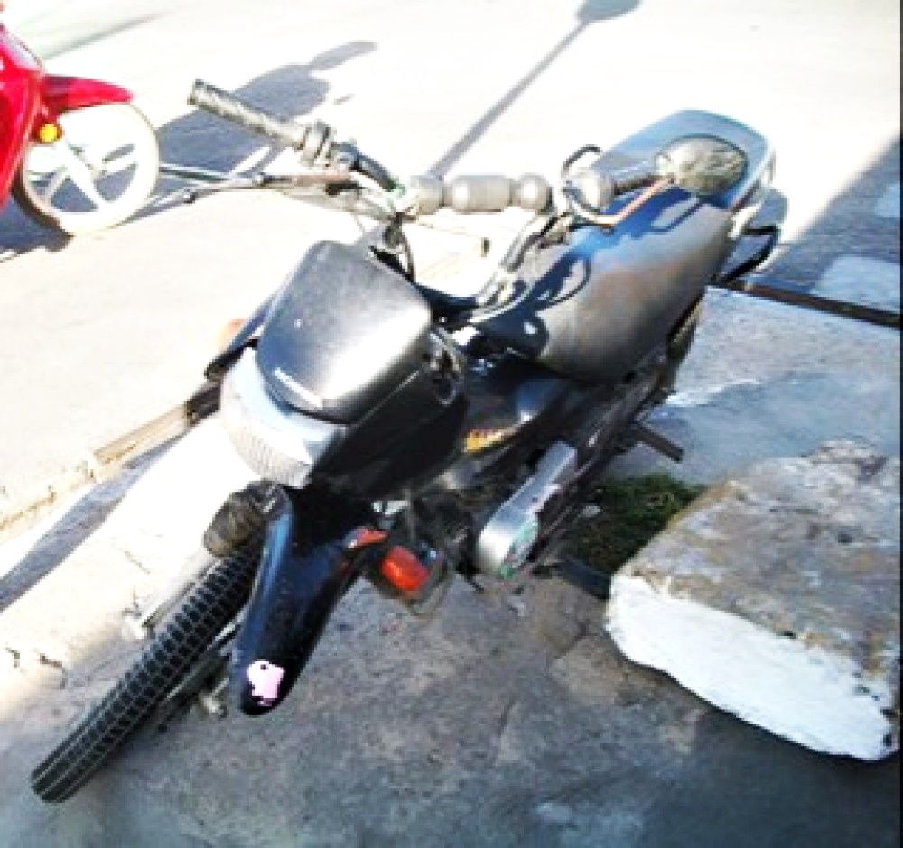 A guarnição policial chegou ao local do ocorrido e foi informada por testemunhas que o condutor da motocicleta seguia pela contra mão de direção da via, quando colidiu de frente com uma caminhonete que estava devidamente estacionada. Com o impacto, ele sofreu ferimentos leves e a passageira ficou sentido dores. Os militares entraram em contato com a ambulância que a socorreu e encaminhou para o hospital. O condutor apresentava visível estado de embriaguez e se recusou a realizar o teste do bafômetro.