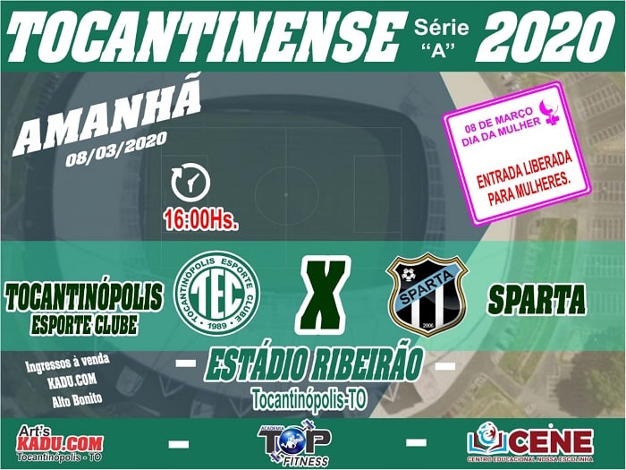 Em homenagem ao Dia Internacional das Mulheres, comemorado neste domingo, 8, mesmo dia da partida contra o Sparta pela última rodada da primeira fase do Campeonato Tocantinense 2020, o Tocantinópolis Esporte Clube (TEC), em homenagem à data, oferecerá entrada gratuita as torcedoras do Verdão do Bico na partida.