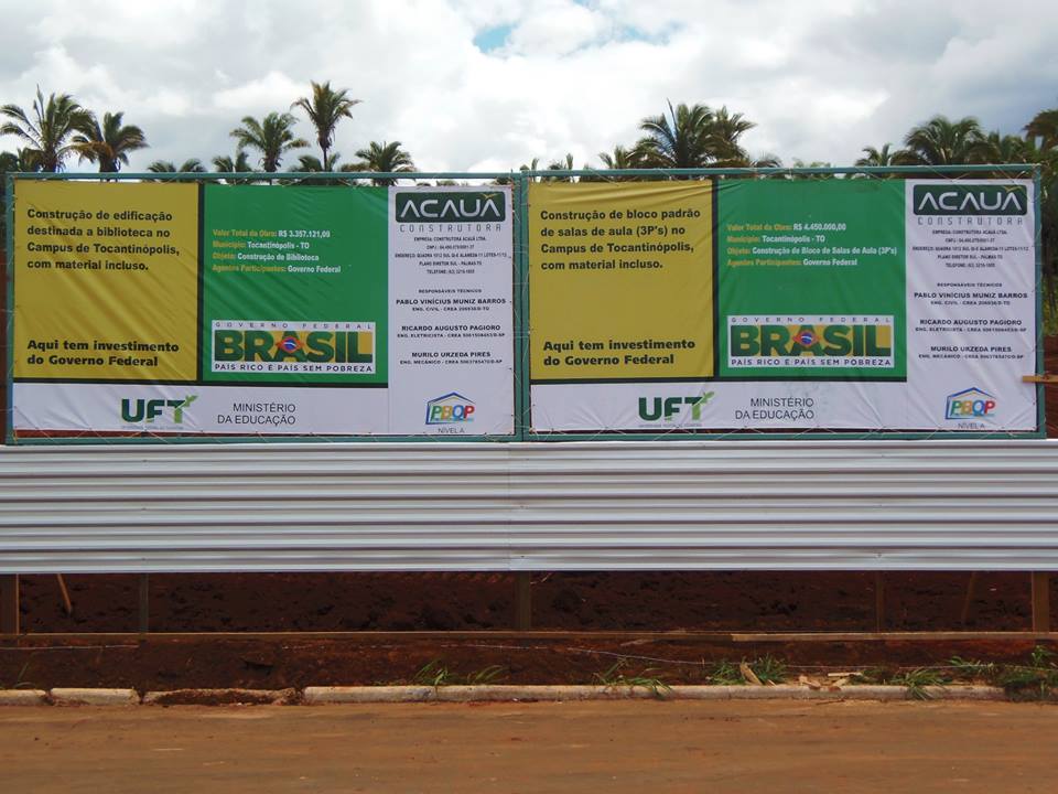 Esta semana a Construtora Acauã Ltda começou a fazer a demarcação da construção dos primeiros prédios do Campus da Universidade Federal do Tocantins (UFT), de Tocantinópolis. Será construído uma Biblioteca e um bloco de três pavimentos. A expectativa é que as obras se iniciem ainda este mês. A área de 25 hectares que a Prefeitura doou para a construção do novo campus fica localizada em uma região de grande expansão urbana do município, com a possibilidade de construção de vários loteamentos.
