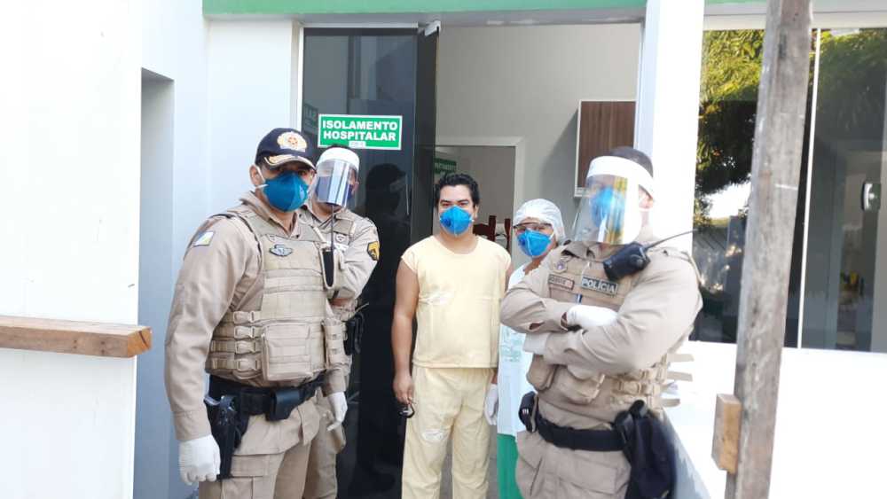 Nesta quinta-feira, 21, uma equipe policial em Tocantinópolis foi solicitada pelo comandante da 5ª Companhia Independente da Polícia Militar, major Dernivaldo da Costa Tirelo, para com ele, atender uma ocorrência no Hospital Municipal José Saboia. Imediatamente a equipe da Polícia Militar deslocou-se ao local onde foi informada pela Direção do Hospital que um paciente, caso confirmado de coronavírus (Covid-19), tinha surtado e estava tentando fugir do Hospital que estava internado. Logo em seguida, a equipe deparou-se com o paciente, um senhor de 50 anos, natural de Carolina-MA, o qual não queria mais ficar no isolamento, pois residia em Araguaína e que queria ficar com sua família e não mais internado naquele Hospital.