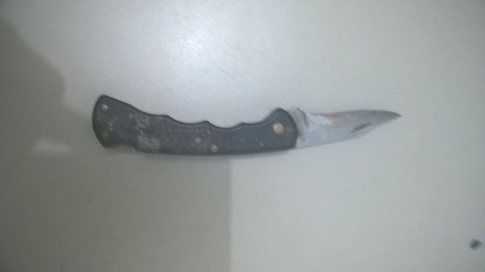 A vítima de posse de um capacete teria agredido o suspeito, sendo que este reagiu e de posse de uma arma branca tipo canivete, desferiu dois golpes na vítima, sendo um debaixo do braço, lado direito e o outro no supercílio direito. Quando a equipe da PM chegou no local, a vítima já havia sido socorrida por terceiros, e conduzida ao Hospital Municipal José Saboia e o suspeito evadido do local.