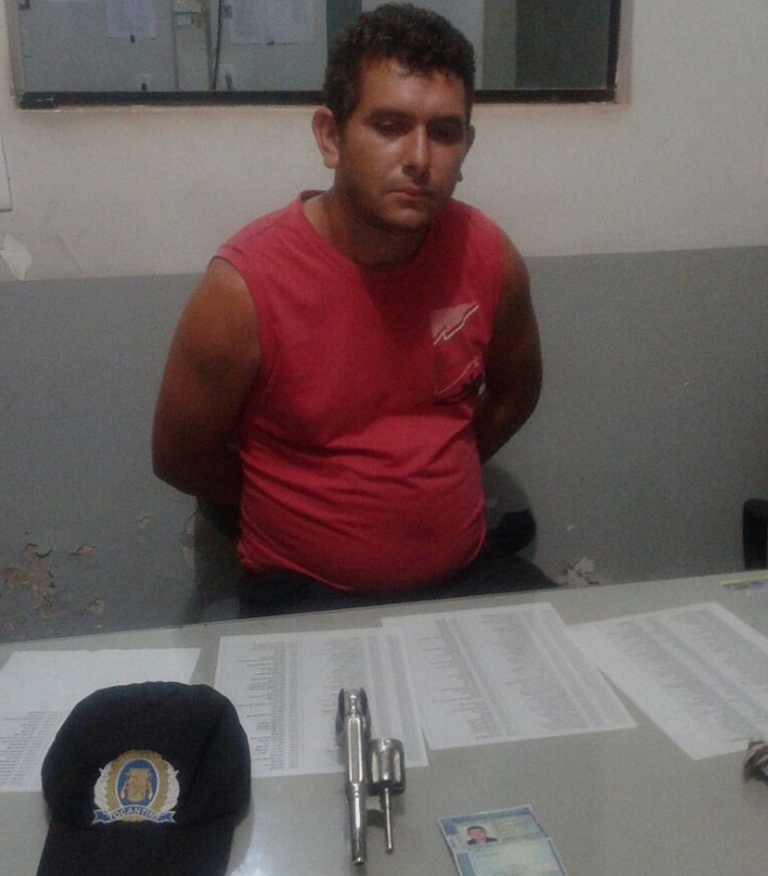 De posse dessas informações o COPOM imediatamente acionou as guarnições de serviço através do rádio da Radio Patrulha, em diligência se deslocaram ao endereço informado, chegando na referida praça, localizaram o autor e após abordagem pessoal foi encontrado um revólver calibre 38, cromado, numeração 180191, marca não identificada, em posse de José Vangney Coelho Sá, de 32 anos, natural de Sítio Novo do Maranhão-MA.