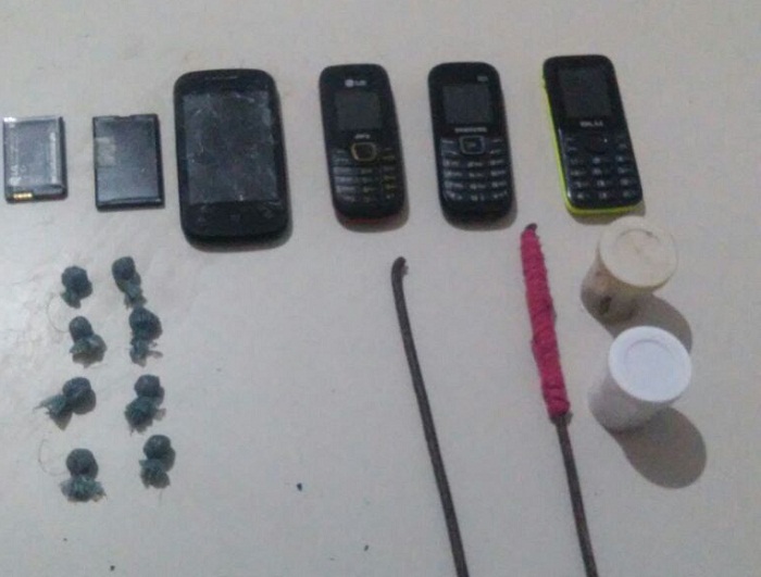 No final da inspeção nas celas foram localizados: 04 aparelhos celulares, duas baterias de celular, 02 chunchos, e 08 papelotes uma substâncias entorpecentes com aparência de maconha. Todos os objetos encontrados foram entregues a direção do estabelecimento prisional para os procedimentos legais. (Ascom 5 CIPM)