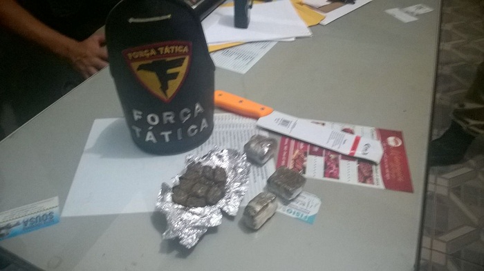 No início da noite o serviço do telefone 190 da Polícia Militar, recebeu uma ligação informando que dois jovens estavam em atitudes suspeita na rua Ceará, próximo a Igreja Católica dos Santos Reis. Imediatamente a Guarnição da PM foi acionada a se deslocar ao local, chegando próximo da Igreja a equipe percebeu que uma pessoa em deslocamento numa motoneta haviam jogado um objeto que caiu ao lado da referida igreja, ao chegar junto da motocicleta a guarnição determinou ao condutor do veículo, Waleson Macedo Lima, que parasse a motoneta. Após busca nele e no adolescente, que estava na garupa, nada de errado foi encontrado com os jovens, porém, foi feito varreduras nas proximidades onde o objeto ora lançado pelos ocupante da motoneta havia caído, sendo encontrado uma sacola branca e nela havia aproximadamente 300 gramas de uma substância prensada aparentando ser Cannabis Sativa, popularmente conhecida como maconha, distribuído em quatro papelotes e uma arma branca tipo faca de aproximadamente 20 cm.