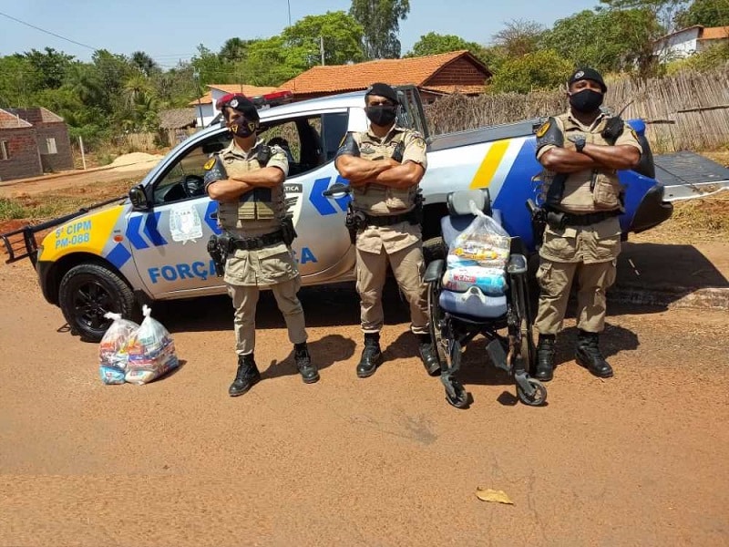 TOCANTINÓPOLIS: Policiais militares doam cadeira de rodas e cestas básicas
