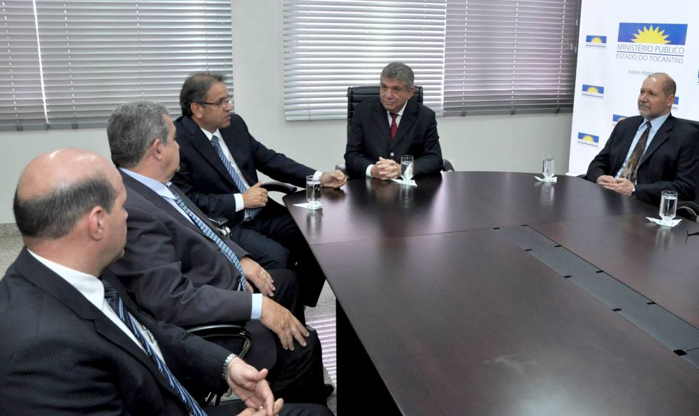 O procurador-geral de Justiça recebeu o governador, acompanhado do procurador-geral do Estado, Sérgio do Valle, do secretário de Segurança Pública, Cesar Simoni, do procurador e ouvidor do MPE, Alcir Rainere Filho, e dos promotores Célio Sousa Rocha, assessor especial, e Marcelo Ulisses Sampaio, o chefe de Gabinete.