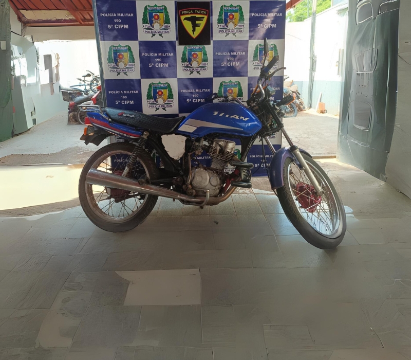 A equipe de Força Tática da 5ª Companhia Independente da PM, durante patrulhamento pelo bairro Alto da Boa Vista, identificou um indivíduo em uma motocicleta de cor azul, com a placa em desacordo com o Código de Trânsito Brasileiro (CTB). O condutor, ao avistar a equipe policial, acelerou e conduziu o veículo em alta velocidade, tentando sair do campo de visão da guarnição.