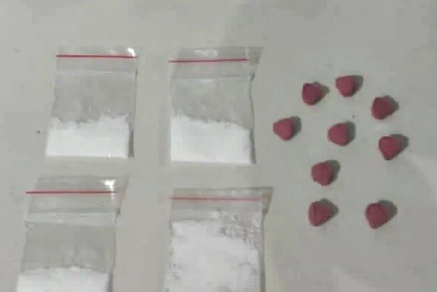 Dada a ordem policial para a busca pessoal, foi localizado com o autor: nove comprimidos de ecstasy (conhecido em baladas como bala) e quatro invólucros contendo substâncias esbranquiçada aparentando ser cocaína.