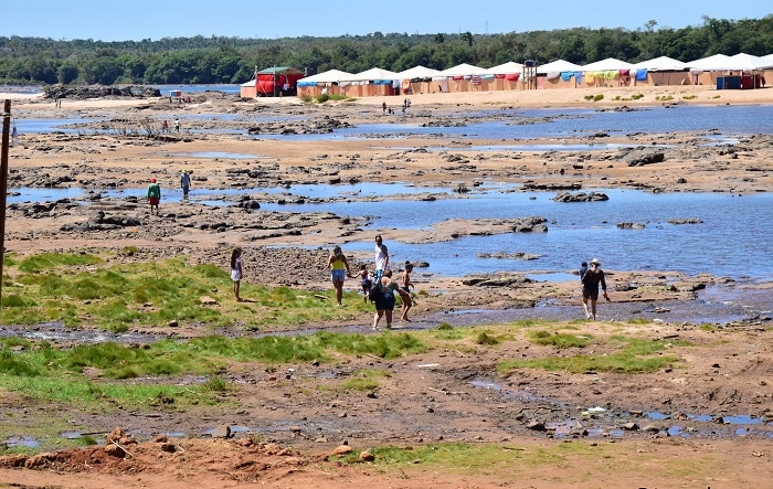 Ainda estamos no mês de julho, e o nível do curso d’água do Rio Tocantins, em Tocantinópolis, já chega ser preocupante, tendo em vista que em setembro do ano passado, o leito atingiu marca histórica de cinco metros abaixo do normal. A previsão é que o coeficiente baixe ainda mais nos próximos meses. Inúmeras pessoas têm aproveitando a situação, e atravessado a pé até à Praia da Santa.