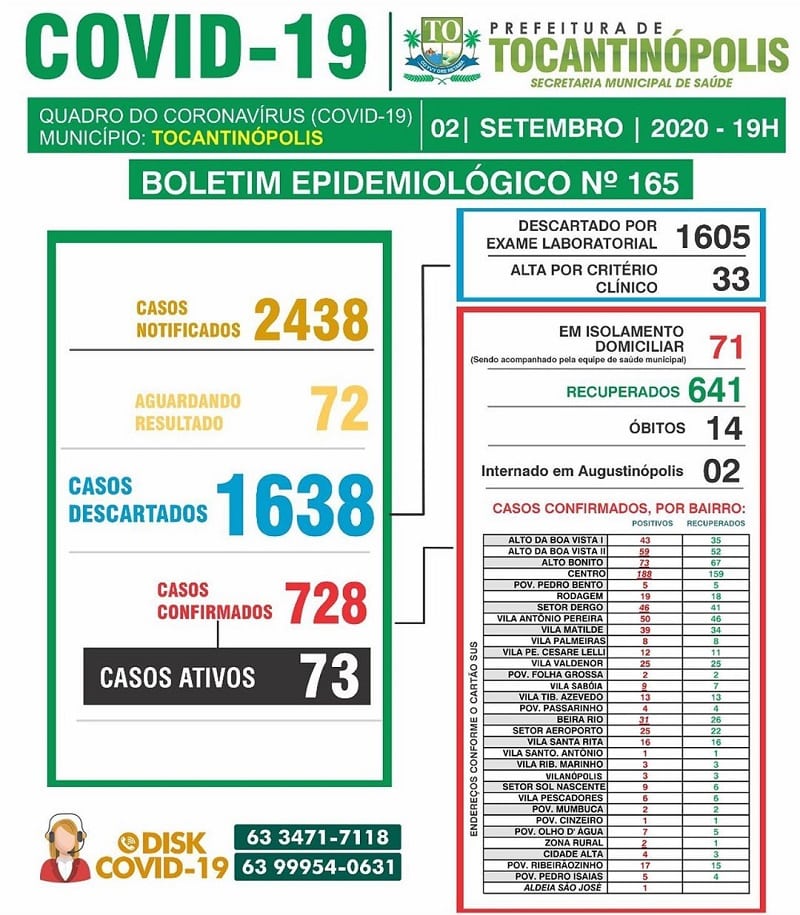 Publicidade Publicidade Bico do Papagaio TOCANTINÓPOLIS: Veja os números da Covid-19 desta quarta, 2 By Folha do Bico 2 de setembro de 2020 0 1105 Share WhatsAppPrintTelegramFacebookTwitterCopy URL Folha do Bico Noticias Relacionadas ARAGUATINS: Atividade pedagógica usa tribunal simulado para aprofundar leitura 15 de dezembro de 2025 AUGUSTINÓPOLIS: Avenida Goiás troca de nome e passa a se chamar Avenida Antônio do Bar 15 de dezembro de 2025 AUGUSTINÓPOLIS: Homenagens ao pai e ao irmão levam Amélio Cayres a revisitar 40 anos de trajetória familiar 15 de dezembro de 2025 Share WhatsAppPrintTelegramFacebookTwitterCopy URL Previous articleCandidato de Dimas em Araguaína será Wagner Rodrigues com Marcus Marcelo de viceNext articleAUGUSTINÓPOLIS: Veja os números da Covid-19 desta quarta, 2 - Advertisement - - Advertisement - Ultimas noticias AÇAILÂNDIA: Adolescente é apreendido por assédio virtual contra professora do Pará 15 de dezembro de 2025 TOCANTINÓPOLIS: Gestão prisional diz ter cumprido diligências e reforça padrão legal de funcionamento 15 de dezembro de 2025 TOCANTINÓPOLIS: Irregularidades estruturais e falta de medicamentos mantêm presídio sob fiscalização 15 de dezembro de 2025 ARAGUAÍNA: Interno do sistema prisional conquista 2º lugar em Medicina após Enem PPL 15 de dezembro de 2025
