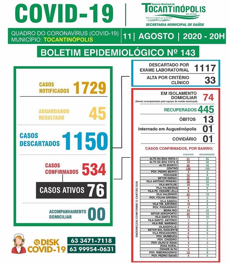 Publicidade Publicidade Bico do Papagaio TOCANTINÓPOLIS: Veja os números da Covid-19 desta terça, 11 By Folha do Bico 11 de agosto de 2020 0 544 Share WhatsAppPrintTelegramFacebookTwitterCopy URL Folha do Bico Noticias Relacionadas AUGUSTINÓPOLIS: Atendimento ao público na Prefeitura passa a ser das 8h às 12h 16 de janeiro de 2026 AUGUSTINÓPOLIS: Estádio Bicão passa por revitalização inédita no gramado 16 de janeiro de 2026 SÃO BENTO: Escola Vitória de França começa a receber revitalização completa com foco em elevar o padrão de ensino 15 de janeiro de 2026 Share WhatsAppPrintTelegramFacebookTwitterCopy URL Previous articleXAMBIOÁ: Jair Farias “peita” líderes do MDB e vai apoiar Jardel para prefeitoNext articleSÃO FÉLIX DO XINGU: PM recaptura foragido da Justiça de São Paulo - Advertisement - - Advertisement - Ultimas noticias AXIXÁ: Auri ia tirar recursos de asfalto e estradas para bancar show de Bruno e Marrone, diz MPF 16 de janeiro de 2026 Ponte estaiada sobre o rio Xingu começa a ganhar forma na Transamazônica no Pará 16 de janeiro de 2026 ARAGUATINS: Abordagem em ônibus leva à captura de suspeito de furto de celular e posse de cocaína 16 de janeiro de 2026 Bola rola neste final de semana e abre oficialmente o Tocantinense 2026 16 de janeiro de 2026