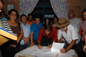 Também foram entregues, a partir das assinaturas realizadas no gabinete do prefeito, uma ambulância, um ônibus escolar e um microcomputador completo para a Secretaria Municipal da Saúde.