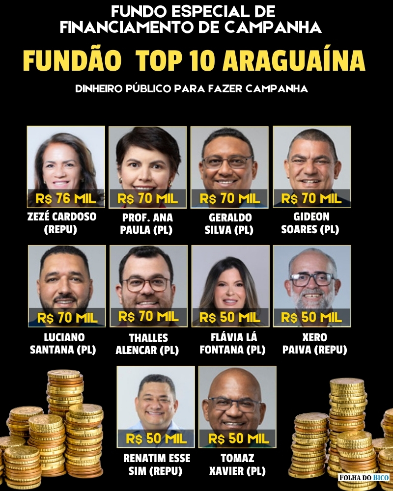 Candidatos a vereador de Araguaína, segundo maior colégio eleitoral do Tocantins, com 118.990 eleitores, já estão recebendo o Fundo Especial de Financiamento de Campanha (FEFC), conhecido como “Fundão Eleitoral”, que é um fundo público usado para financiar campanhas eleitorais de candidatos nas eleições no Brasil.