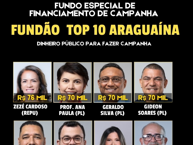 Candidatos a vereador de Araguaína, segundo maior colégio eleitoral do Tocantins, com 118.990 eleitores, já estão recebendo o Fundo Especial de Financiamento de Campanha (FEFC), conhecido como “Fundão Eleitoral”, que é um fundo público usado para financiar campanhas eleitorais de candidatos nas eleições no Brasil.